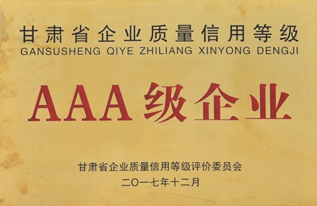 甘肃省企业质量信用等级AAA级企业
