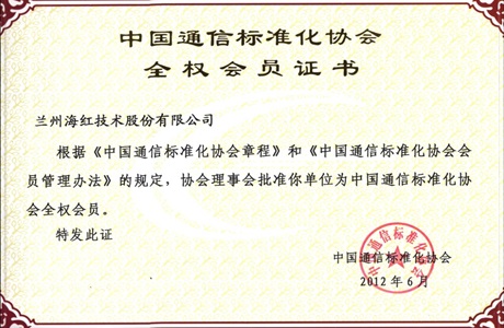 中国通信标准化协会 全权会员证书