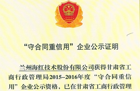守合同 重信用企业荣誉证书