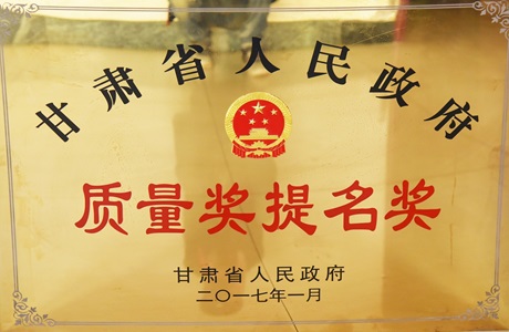 甘肃省人民政府质量奖提名奖