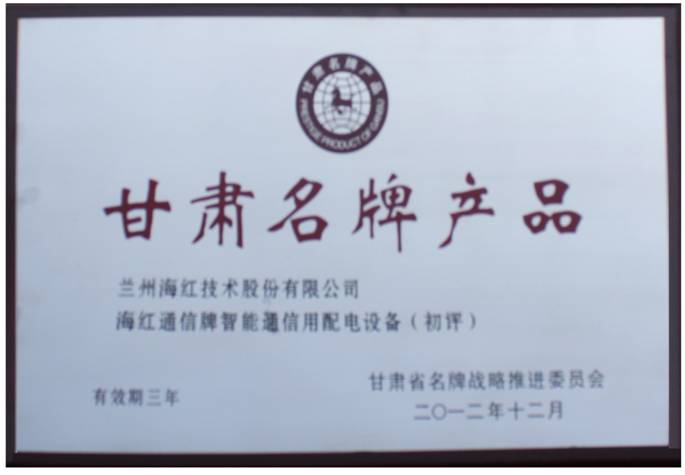我公司“3044am永利通信牌智能通信用配电设备” 被评定为甘肃名牌产品