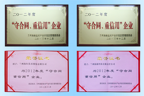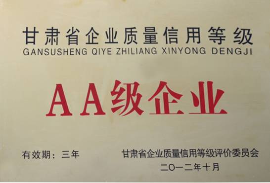 公司被评为2012年度甘肃省企业质量信用等级AA级企业