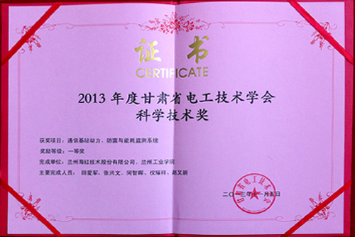 我公司获得“2013年度甘肃省电工技术学会科学技术奖一等奖”