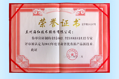 我公司研制的“通信基站动力、防雷与能耗检测系统” 喜获“2012年度甘肃省优秀新产品新技术” 殊荣