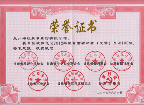 我公司被评选为“甘肃省私营(民营)企业100强“单位