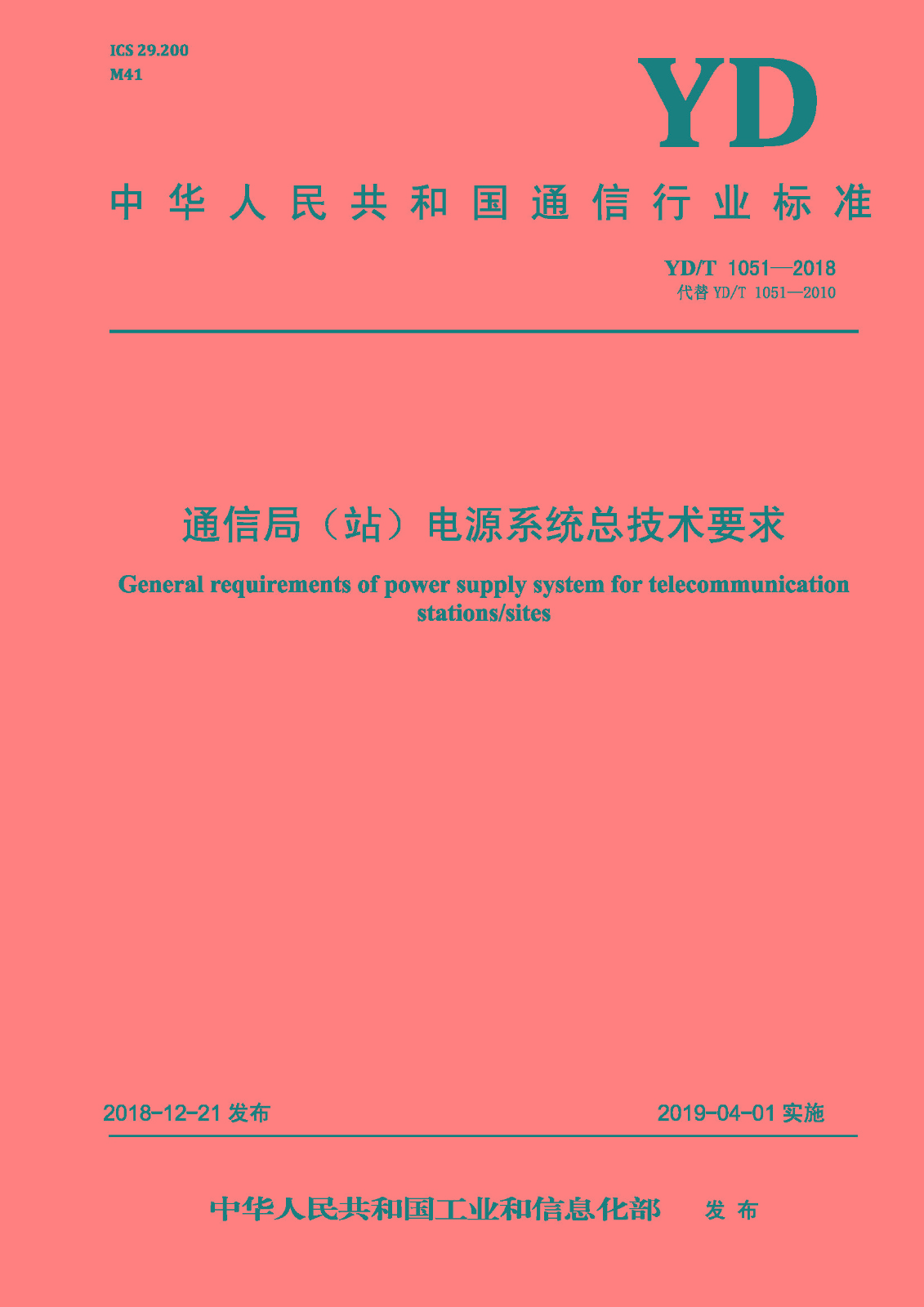 我司参与起草的《通信局(站)电源系统总技术要求》(YD/T 1051-2018)行业标准经中华人民共和国工业和信息化部批准发布,已于2019年04月01日实施。我司技术中心研发部工...