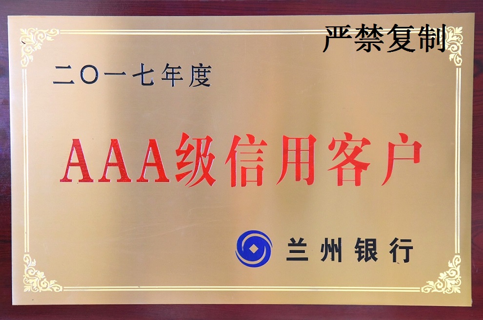 我公司被兰州银行评为二零一七年度AAA级信用企业 By 3044am永利技术 2017-12-01 00:00:00 0次 上一篇:我公司顺利通过“知识产权管理体系”认证,取得认证证书 下一篇:“甘肃省中小企业领导人质量基础能力提升培训班”学员来我公司参观交流