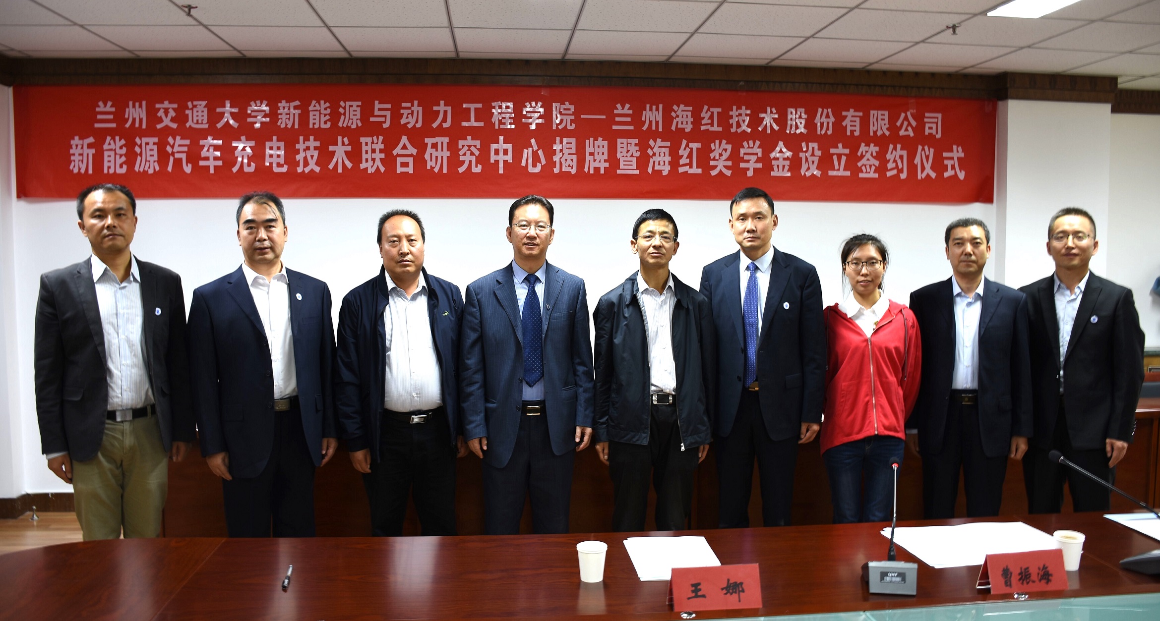 9月14日下午,我司与兰州交通大学新能源与动力工程学院共建“新能源汽车充电技术联合研究中心”揭牌暨“3044am永利奖学金”设立签约仪式在兰州交通大学新能源与动力工程学院举行。新能源与动力工程学院书记汤旻安教授、院长董海鹰教授、副院长姚翔飞、罗小勇,我司董事长/总经理曹振海、董事/副总经理田爱军等人出席了揭牌及签约仪式。