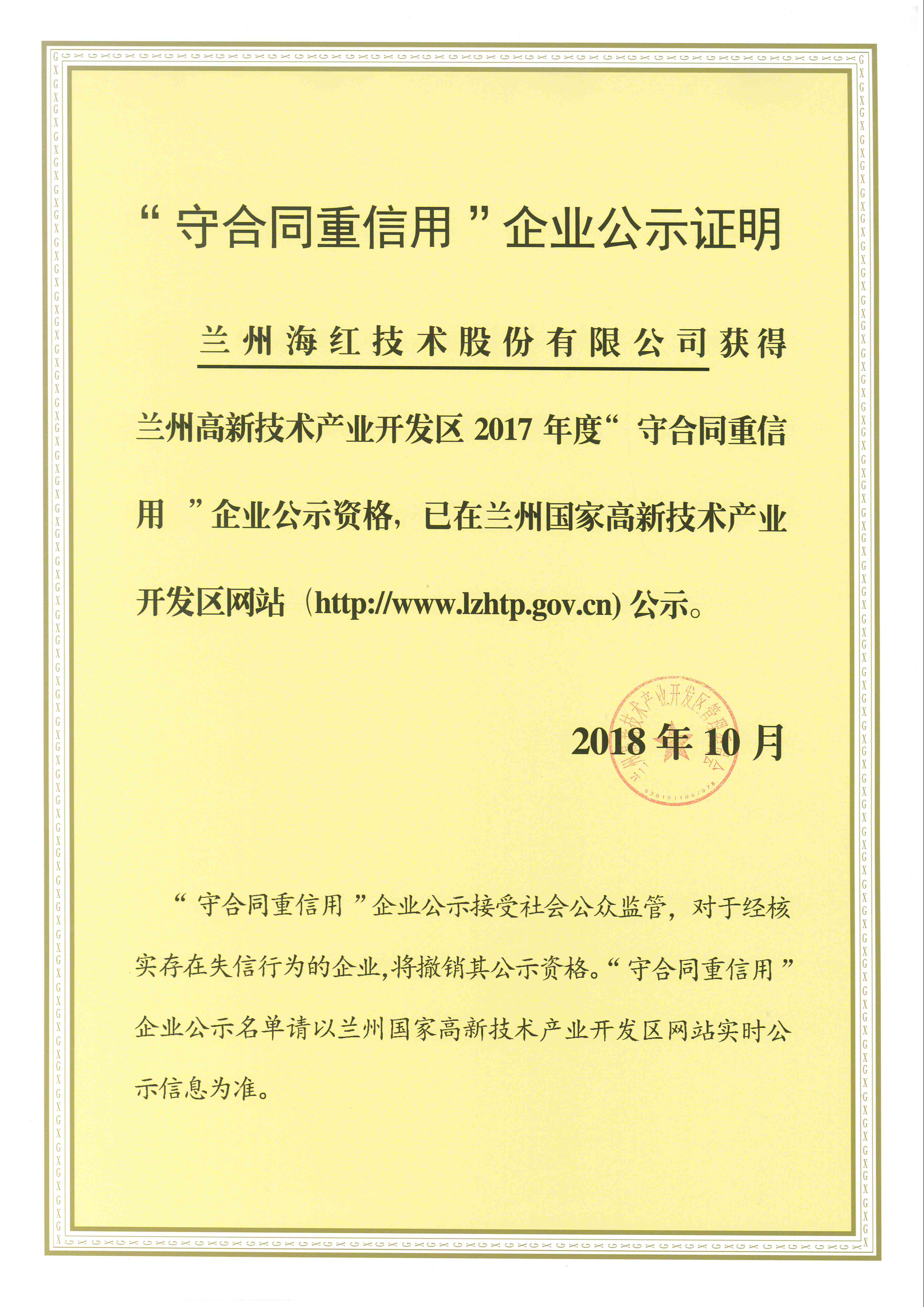 我公司荣获2017年度兰州市/高新区“守合同、 重信用”企业荣誉称号 By 3044am永利技术 2018-11-29 00:00:00 0次 我公司被兰州市工商行政管理局和兰州市高新技术产业开发区管理委员评定为2017年度“守合同、重信用”企业。 上一篇:我司与兰州交通大学新能源与动力工程学院共建“新能源汽车充电技术联合研究中心”暨设立“3044am永利奖学金” 下一篇:我公司又取得二项实用新型专利