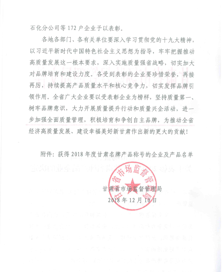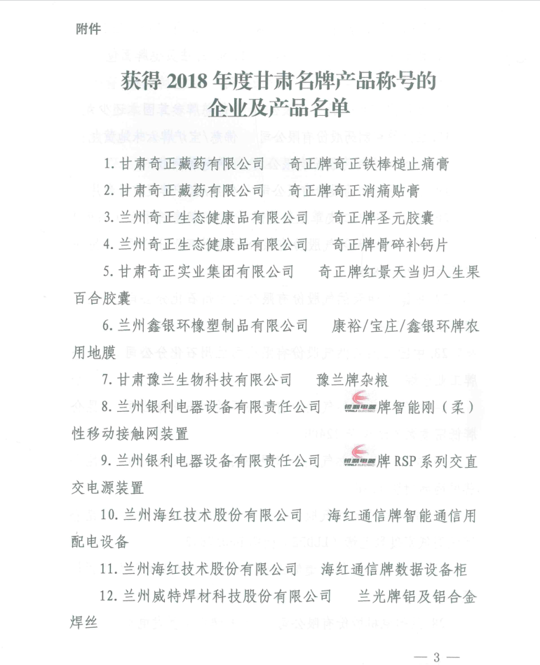 我公司“3044am永利通信”牌智能通信用配电设备和数据设备柜两个产品获得2018年度“甘肃名牌产品”称号