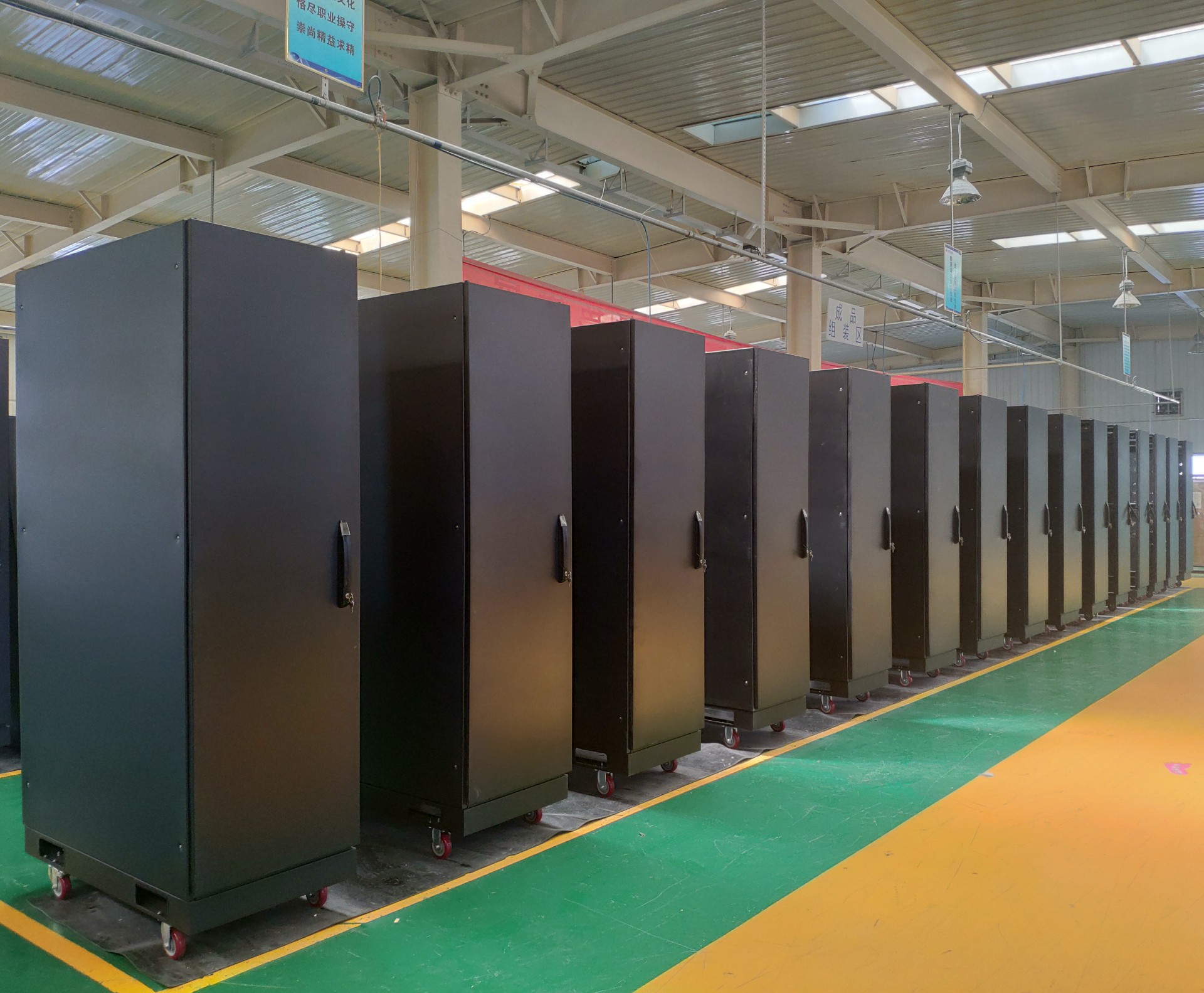 ►机柜主体框架及承重部件采用2.0mm优质冷轧钢板,门板采用1.5mm优质冷轧钢板,侧板及其余部件材料为不低于1.2mm优质冷轧钢板;
