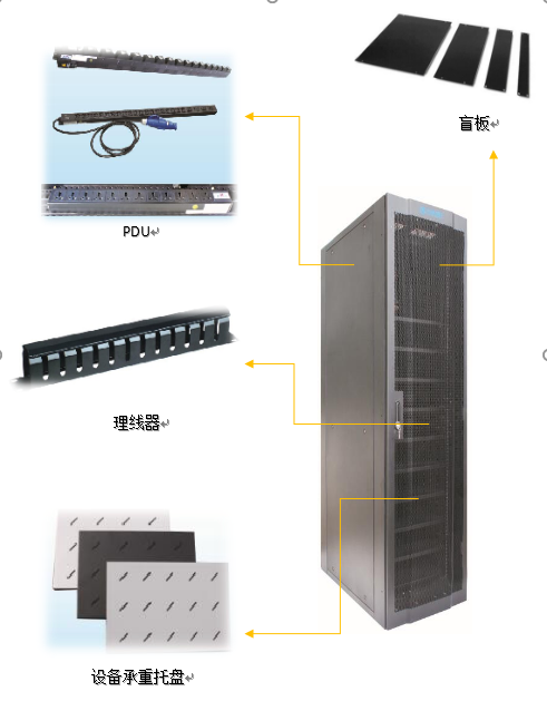 数据设备用网络机柜按功能划分主要包括:机柜体、散热部件、电源部件、布线管理及其他配件。