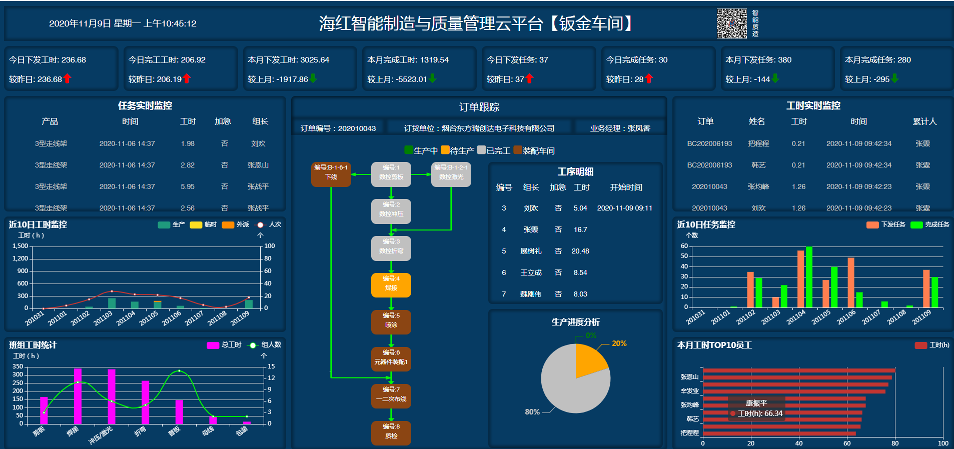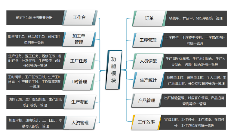 该平台为公司建立一个规范、准确、即时的生产数据库,实现物料需求、计划排产、生产监控、产品销售、仓储物流、售后服务等产品生命周期全过程管理,有效控制成本,掌握及时、准确、全面的生产动态,有效的解决生产环节的人员负荷、产品质量、工作效率、工时等问题,便于企业内部高效、快速的管理与沟通,为企业构建数字化工厂提供一套完整的、全面的解决方案。