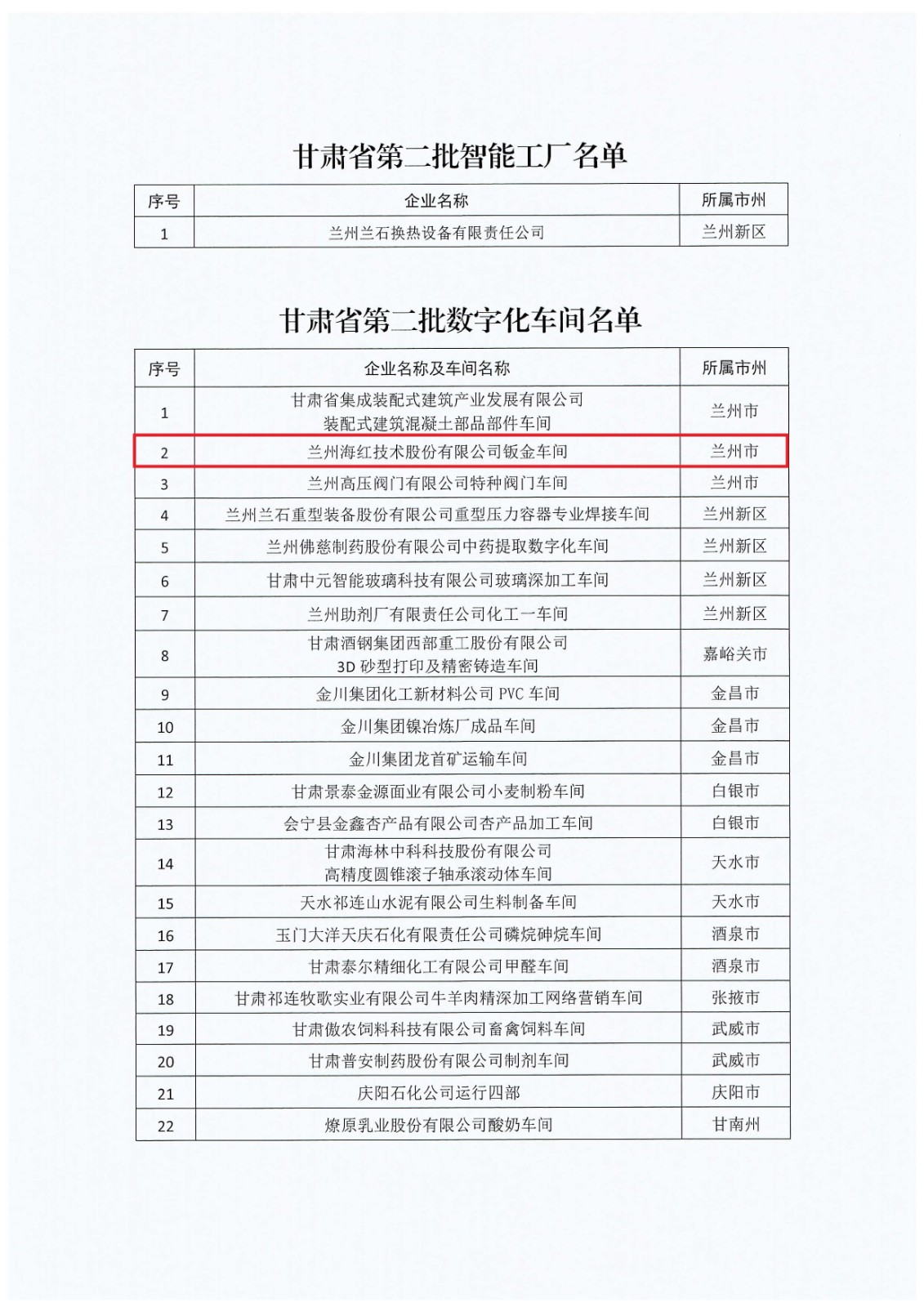 甘肃省工业和信息化厅发布甘肃省第二批数字化车间名单公告,我司钣金车间被认定为甘肃省第二批“数字化车间”。
