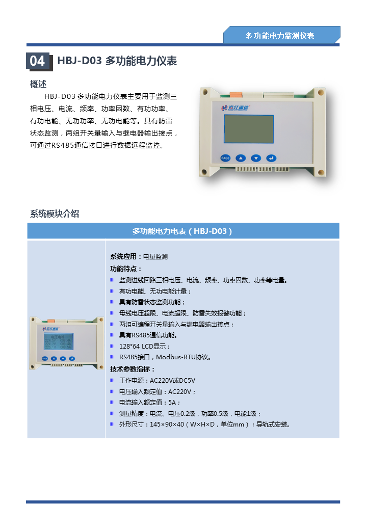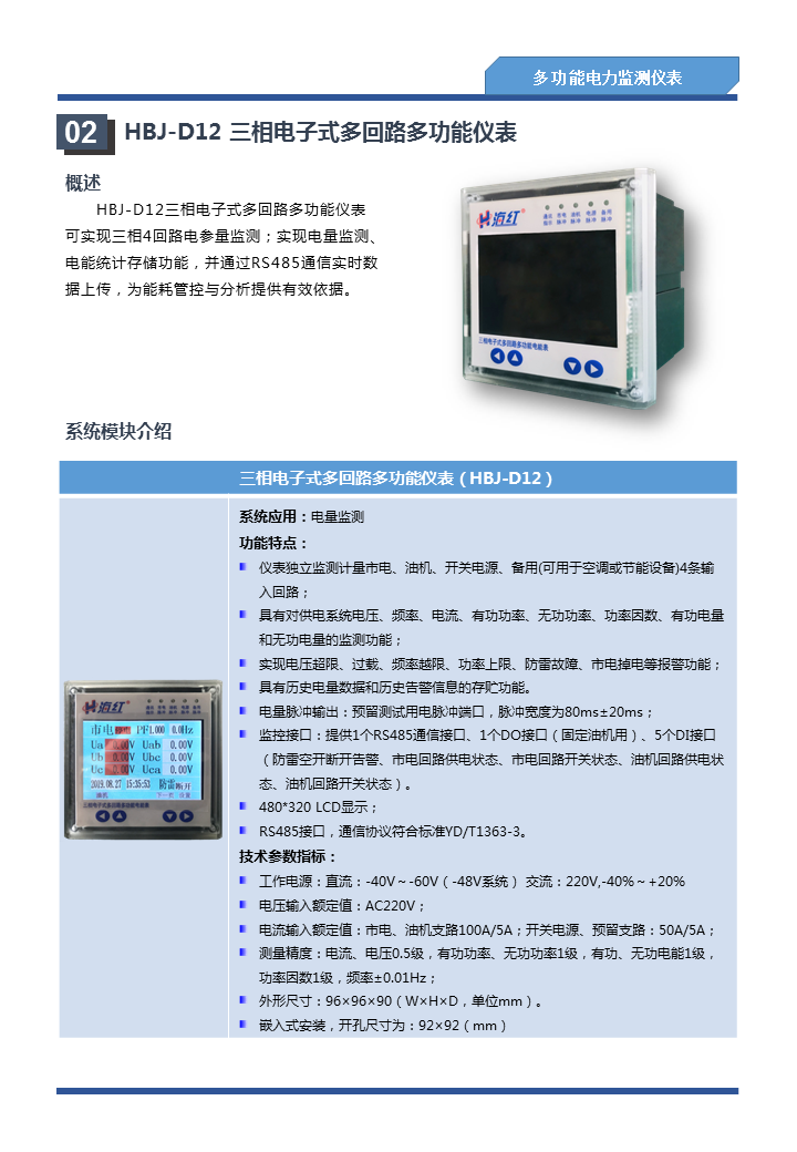 智能配电监控系统及电力仪表
