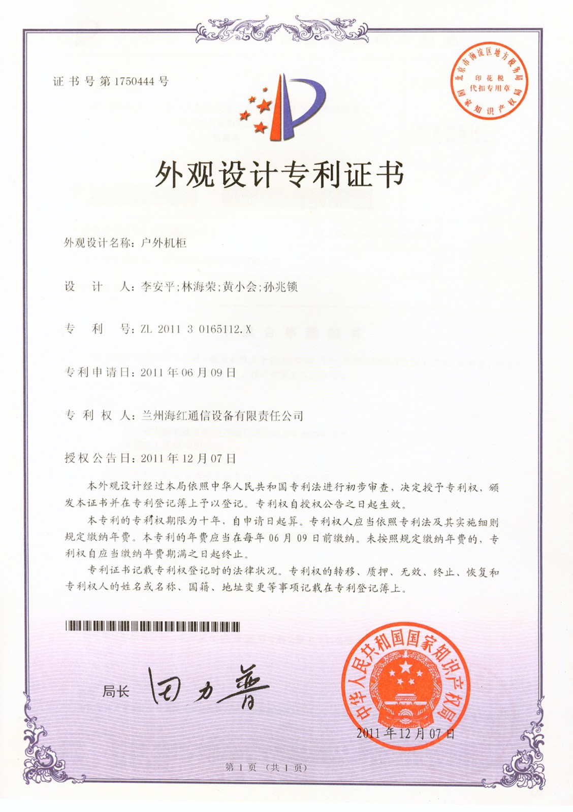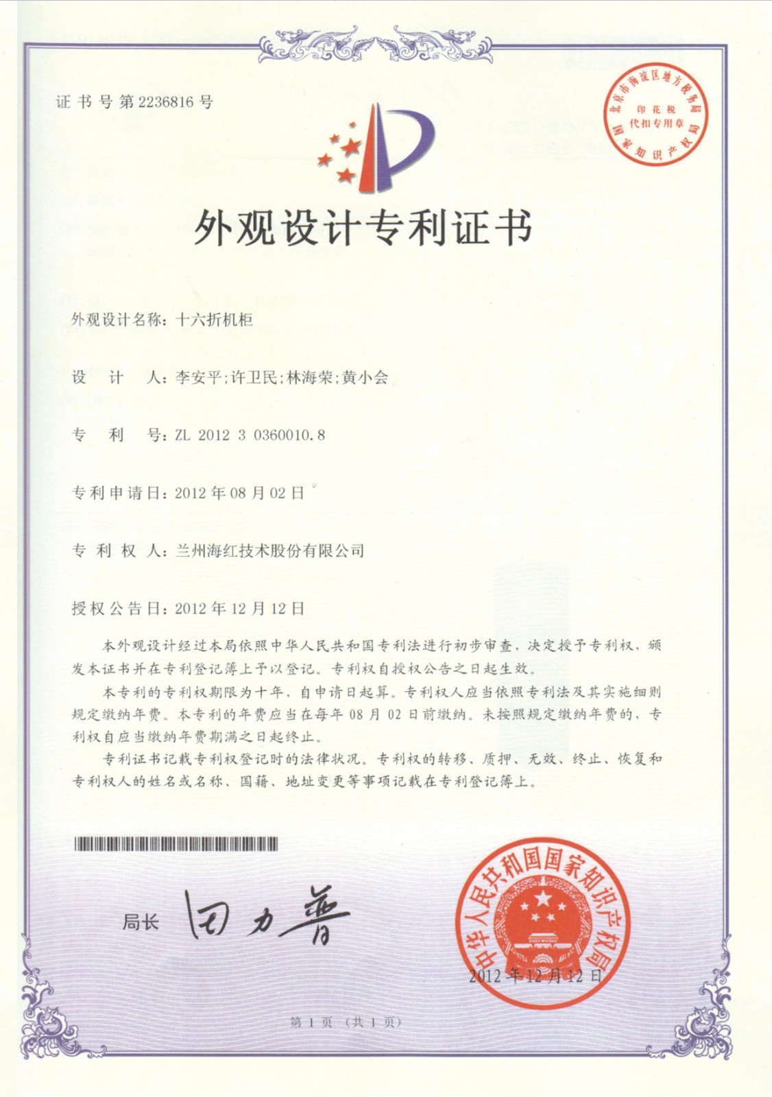外观设计专利证书系列
